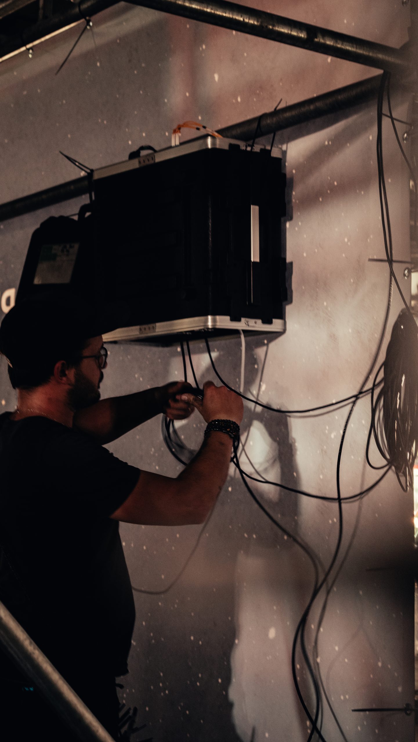 Voor de communicatie hebben we een glasvezellijn van bijna 3 km aangelegd die het gehele terrein omcirkelt. Deze glasvezelverbinding is de ruggengraat van alle communicatie, van betalingen en wifi tot de videoverbindingen en telefonie. De vele camera’s die we op het terrein plaatsen zijn allemaal discreet ingebouwd in het decor, zodat er geen zichtbare, lelijke masten of camera’s staan die afbreuk doen aan de esthetiek van het festival. Dit maakt het voor de bezoekers veel aangenamer, aangezien ze zich niet bekeken voelen en de beveiliging onopvallend maar effectief is.